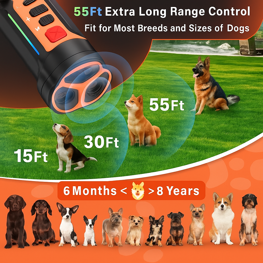 Stop struggling with endless barking. Our ergonomic, handheld design lets you correct your dog's behavior with a simple press, making training sessions stress-free and effective, anytime, anywhere.